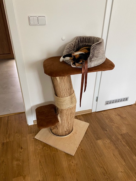 Sisal, masivní dřevo, fleece, vatelin — používám jen materiály, které jsou bezpečné pro kočku a vydrží roky každodenního škrábání.